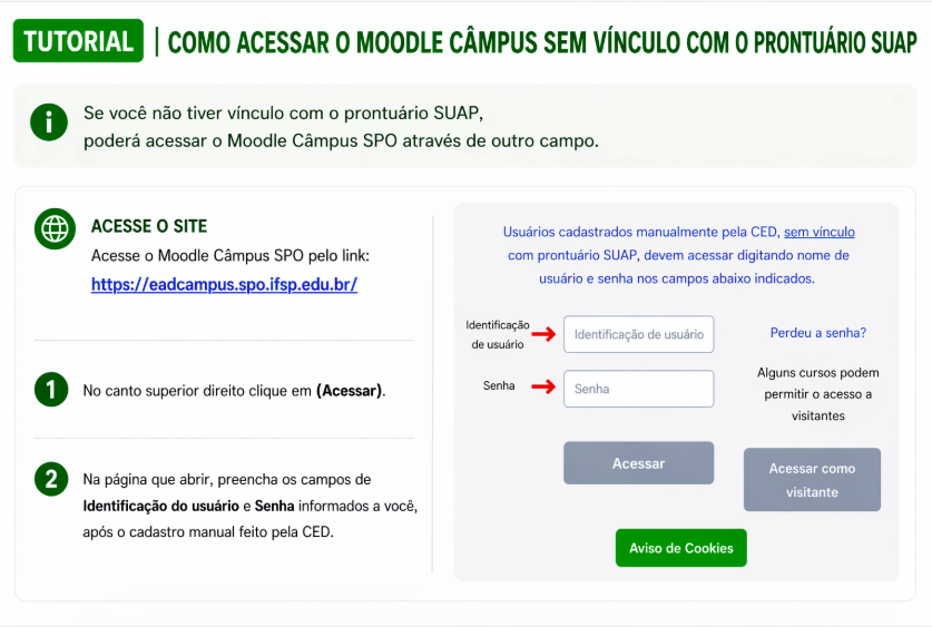 Como acessar o moodle sem vínculo com o prontuário SUAP (atualizado em 04/2026)